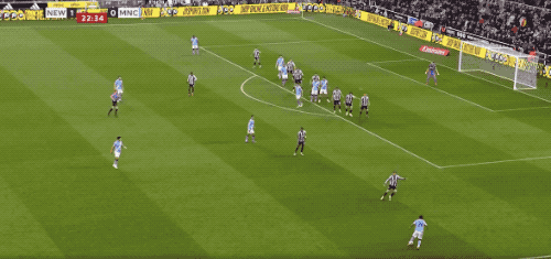 上半场的后半段,两队局面反转,曼城完成了11次射门,围着纽卡斯尔的禁区狂轰滥炸,纽卡斯尔只有1次射门。
